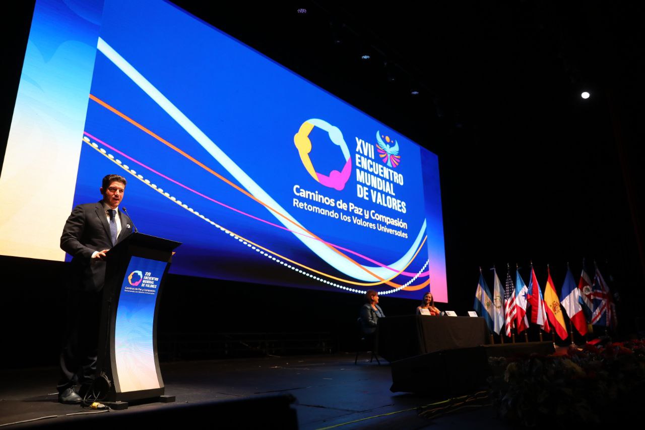 San Pedro Garza García, Nuevo León.– Con el lema “Caminos de paz y compasión. Retomando los valores universales”, el gobernador Samuel Alejandro García Sepúlveda y Mariana Rodríguez Cantú inauguraron la décimo séptima edición del Encuentro Mundial de Valores, realizada en el Auditorio Showcenter Complex.