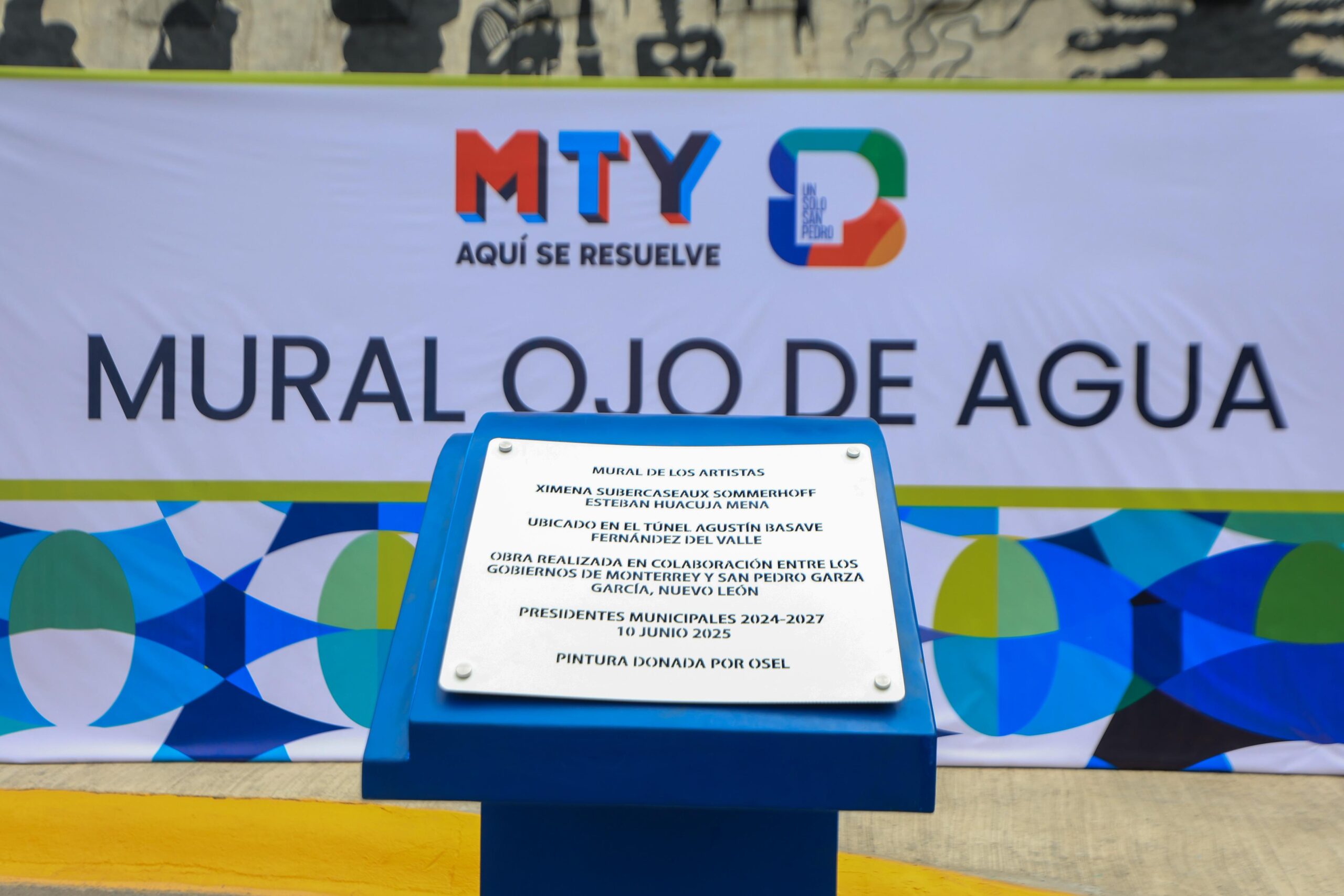 Monterrey, N.L.— En un esfuerzo conjunto por fortalecer la movilidad metropolitana y embellecer el espacio urbano, los alcaldes de Monterrey, Adrián de la Garza, y de San Pedro Garza García, Mauricio Fernández Garza, inauguraron este martes el mural “Ojo de Agua”, una obra de arte urbano que ahora engalana el túnel Agustín Basave, una de las principales vías de conexión entre ambas ciudades.