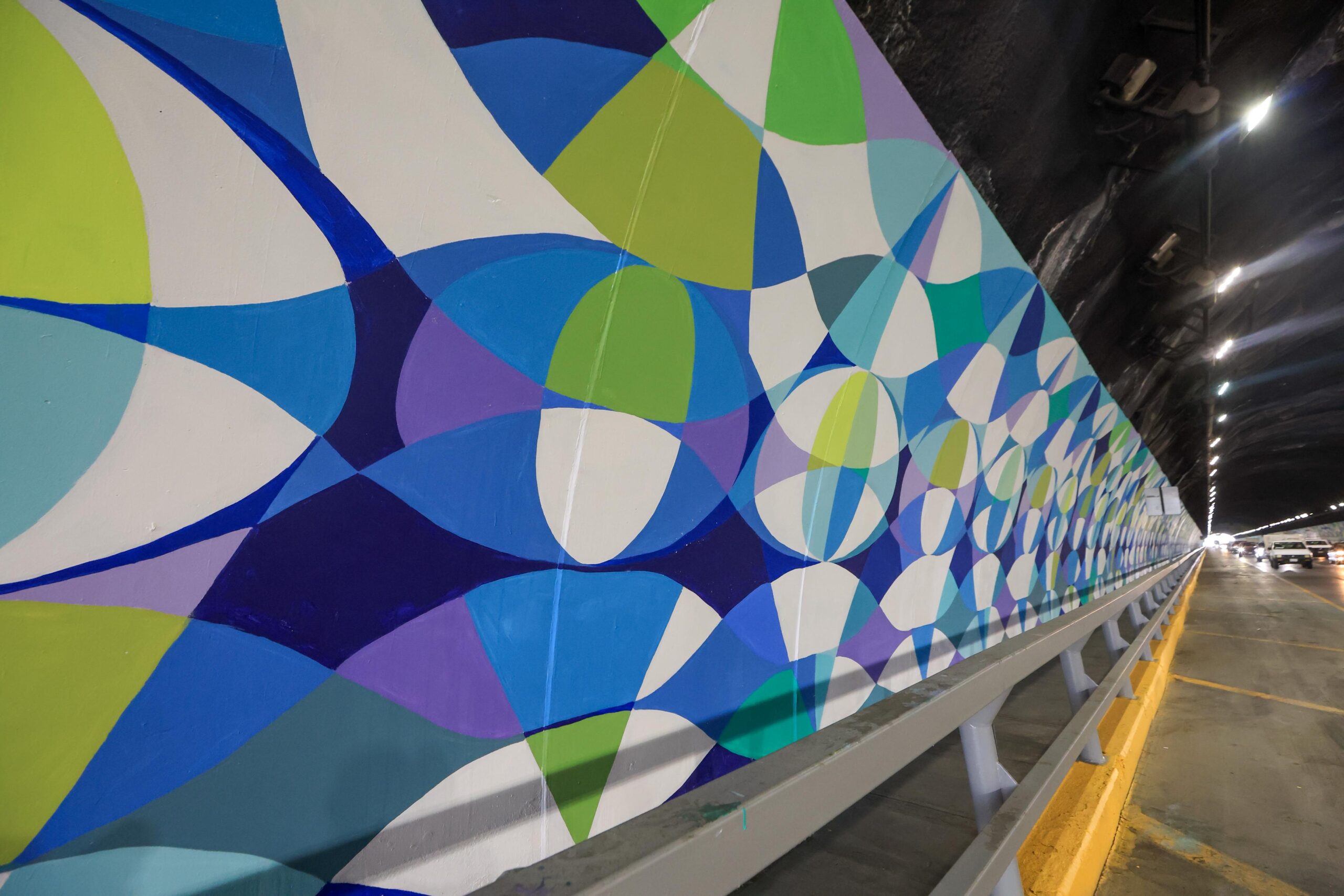 “Ojo de Agua” representa elementos naturales distintivos de la región, como ondas de agua, lunas y cerros, y fue trazado con tecnología láser para garantizar precisión y uniformidad a lo largo del túnel.