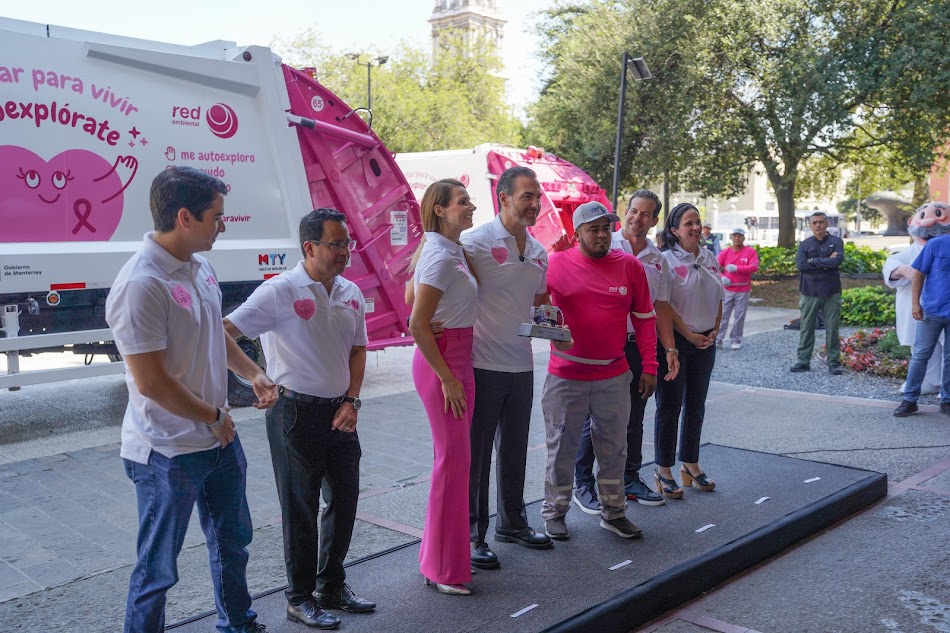 Durante todo el mes, las unidades rotuladas y los integrantes de la cuadrilla de recolección también vestidos de rosa, recorrerán la ciudad para invitar a las regiomontanas a la autoexploración.