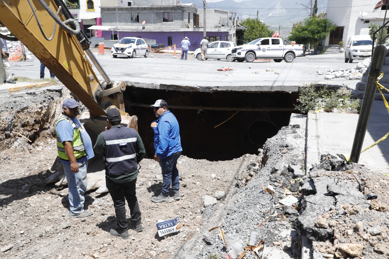 Personal de Agua y Drenaje de Monterrey se encuentra en el lugar trabajando en la reconexión de las tuberías dañadas.