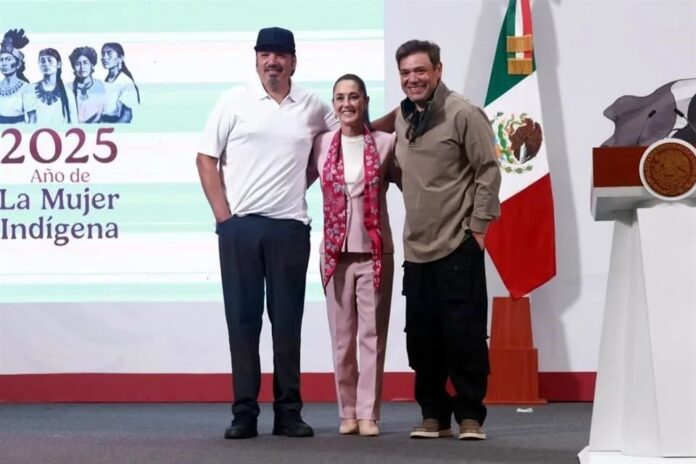 México.-Este jueves en la conferencia matutina de la Presidenta Claudia Sheinbaum Pardo en Palacio Nacional se contó con la visita de alguno integrantes del grupo Intocable.
