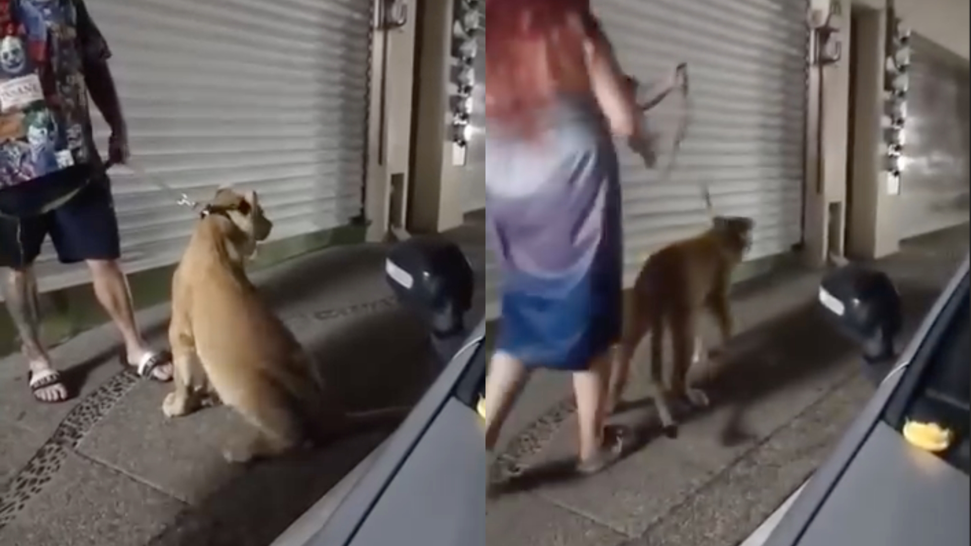 La situación pudo haber terminado en una tragedia, ya que en lapso donde fue ubicada la leona, se ve que la cadena se la pasan a una mujer.
