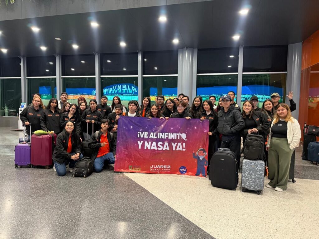 Juárez, Nuevo León.- Desde este lunes, un grupo de 40 jóvenes juarenses inició oficialmente su participación en el programa internacional ¡Al Infinito y NASA YA! , una experiencia académica única que los llevará durante toda una semana a internarse en actividades de la NASA, universidades y centros de innovación en la ciudad de Houston, Texas.