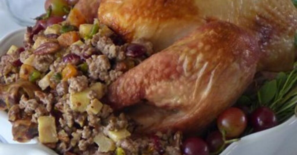 - Rellenar el pavo: Rellenarlo con una mezcla de ingredientes como manzana, pan remojado en leche, frutos secos, panceta y hierbas.