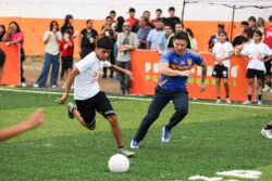 Con la participación del estudiantado en el futbol como herramienta de bienestar y desarrollo integral, alumnos y alumnas de este centro escolar protagonizaron varias “cascaritas de verano” teniendo como refuerzos al mandatario estatal y al Secretario de Educación, Juan Paura.