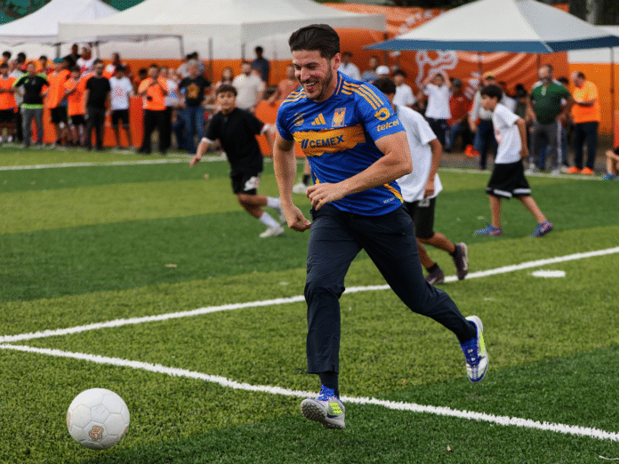 Nuevo León.- En el marco de la estrategia “ponte Nuevo, Ponte Mundial” rumbo a la Copa Mundial 2026, el Gobernador Samuel Alejandro García Sepúlveda, funcionarios estatales, alumnos y maestros “estrenaron” una cancha rehabilitada en la Escuela Secundaria 41 “José T. Puente”, de la Colonia Santa Cecilia, en Monterrey.