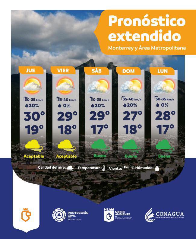 Para el estado de Nuevo León, este sistema frontal provocará principalmente un aumento en la intensidad de los vientos y la posibilidad de lluvias aisladas, sin que se prevea un descenso drástico e inmediato de las temperaturas en el Área Metropolitana de Monterrey durante esta semana.