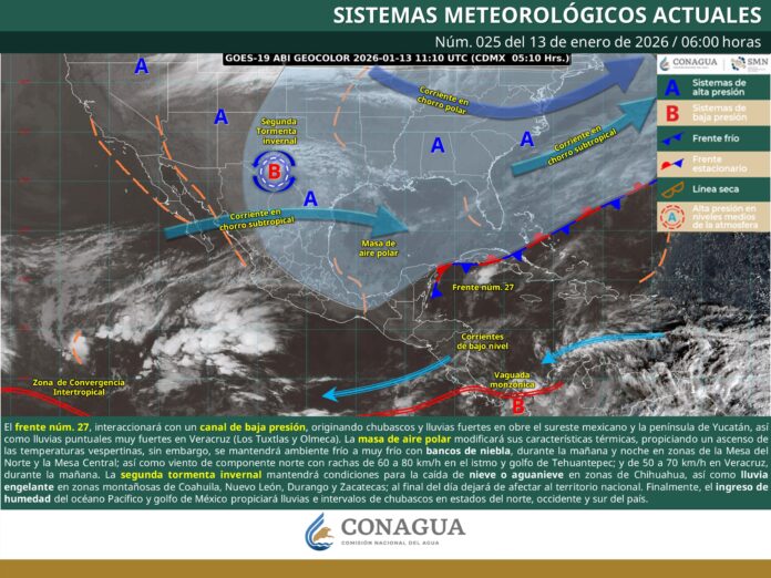 Nuevo León.- El Servicio Meteorológico Nacional informó que el frente frío número 28, el segundo de seis que se esperan durante el mes de enero, ingresará este miércoles 14 de enero en la entidad.