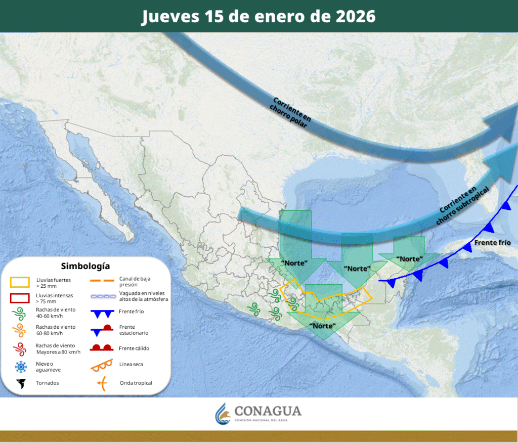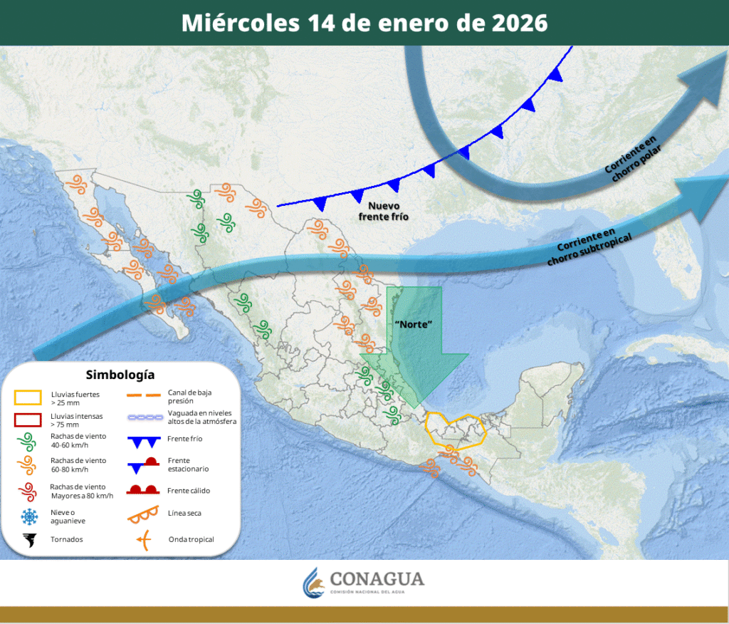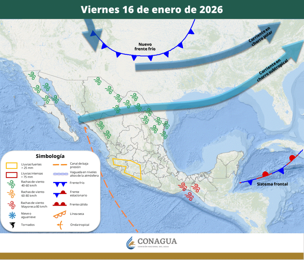 Para el jueves este sistema frontal ya se estará desplazando sobre la península de Yucatán y el sureste mexicano.