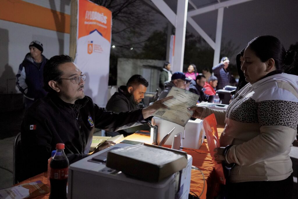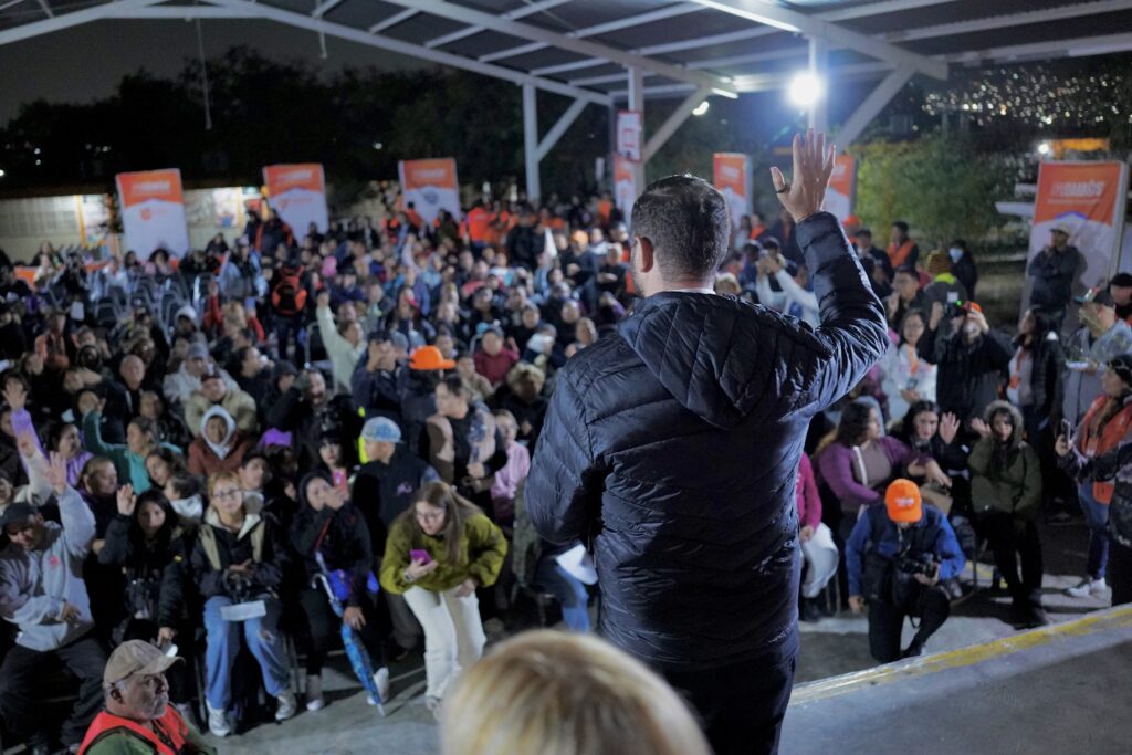 “Nuestra presencia en estas colonias ha sido permanente desde hace cuatro años, como nos lo pidió el Gobernador Samuel García. Nuestro compromiso está aquí, aquí estamos, llueve, literalmente, truene o relampaguee, aquí estamos con ustedes.