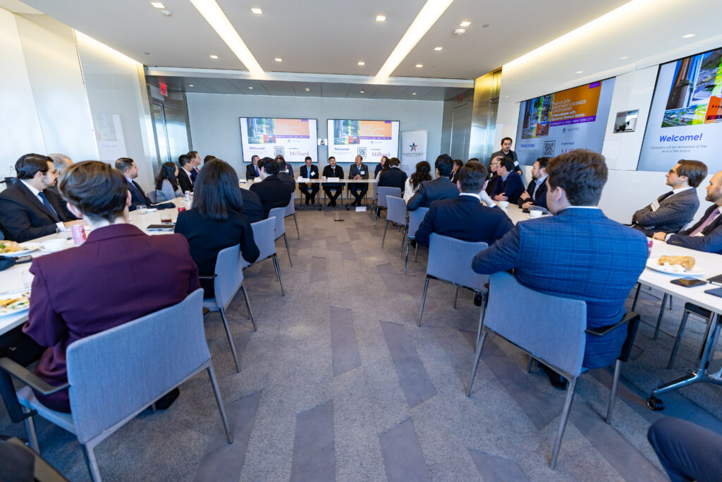Como parte de la mesa de trabajo, García Sepúlveda participó en un diálogo abierto con empresas integrantes de la Cámara como Milbank, Santander, Citibank y Goldman Sachs.