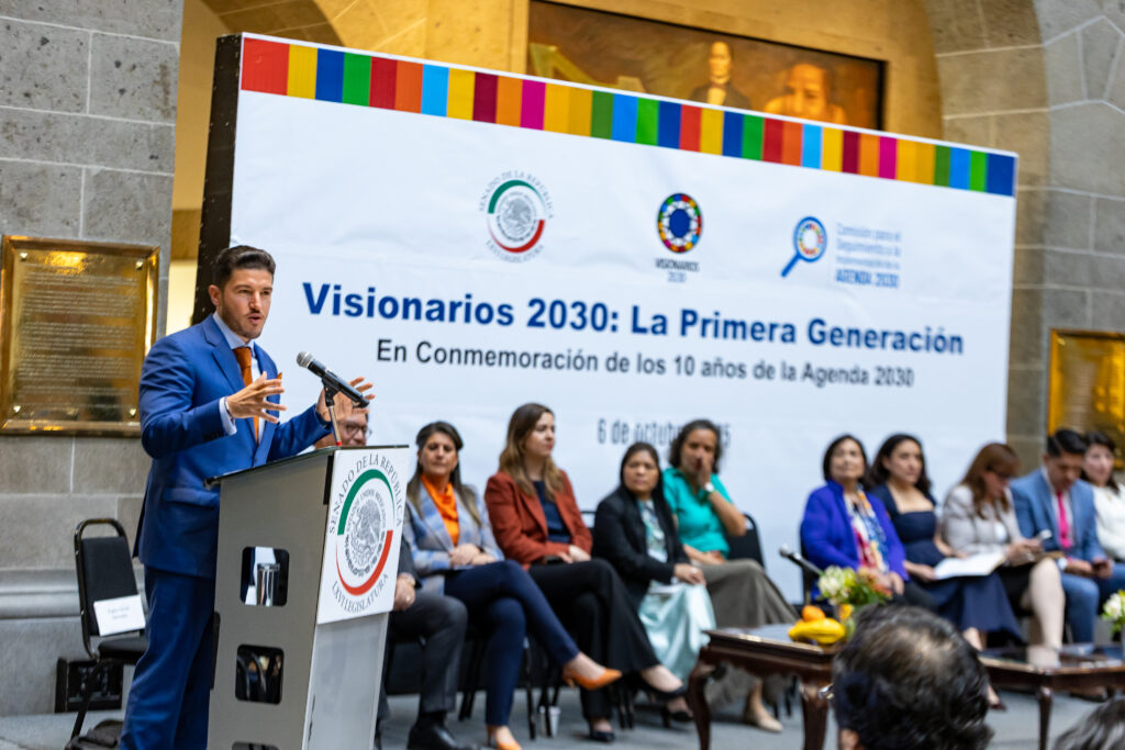 Nuevo León.- En representación del Gobierno de Nuevo León, el Gobernador Samuel Alejandro García Sepúlveda y la Secretaria de Igualdad e Inclusión, Martha Herrera González, participaron en el evento Visionarios 2030: La Primera Generación, celebrado en el Senado de la República con motivo de los 10 años de la Agenda 2030 para el Desarrollo Sostenible.