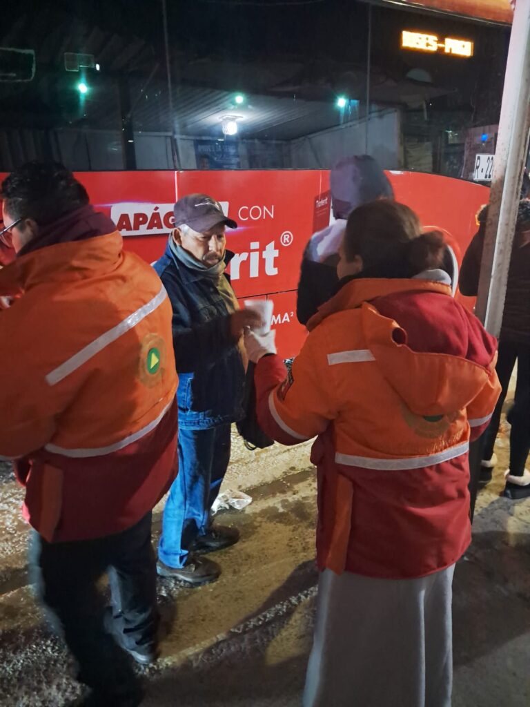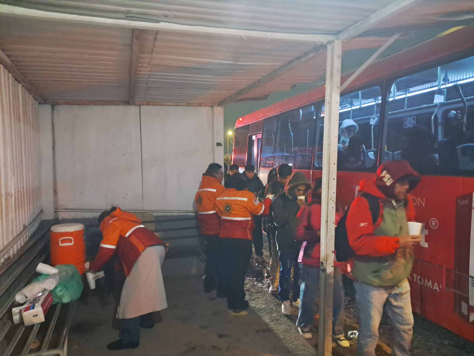 Otros puntos importantes donde se reúnen ciudadanos, fueron las paradas de camiones, donde muchos, esta madrugada se mantenían a la espera de las unidades de transporte para ir a sus actividades diarias. En estos lugares también se entregaron bebidas calientes y pan.