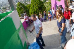 El Munícipe, junto a su esposa y presidenta del DIF, Gaby Oyervides, convivió con los vecinos y colaboró en la pintura de casas.