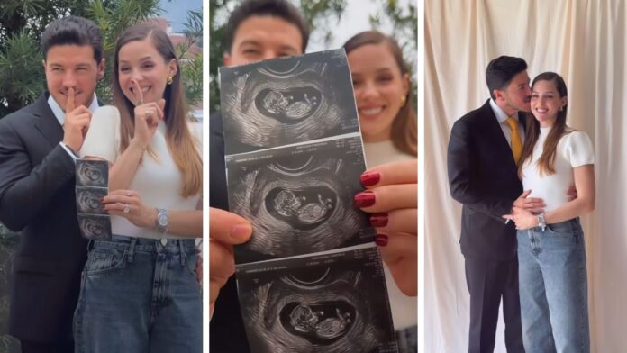 El video inicia con la pareja sonriente y el mensaje “Les tenemos una sorpresa…”. Posteriormente, su hija Mariel aparece sosteniendo la ecografía con la frase: “Voy a ser hermana mayor otra vez”, mientras que ambas niñas portan camisetas con la leyenda “Big Sis”.