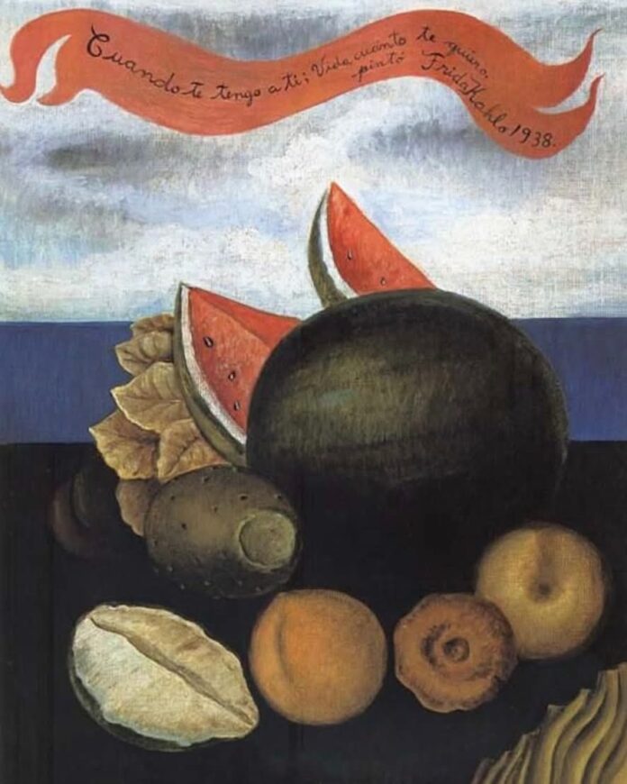 Ilustra esta información: «Cuando te tengo a ti: Vida, cuanto te quiero». (1938). Obra de Frida Kahlo (1907-1954), pintora mexicana.