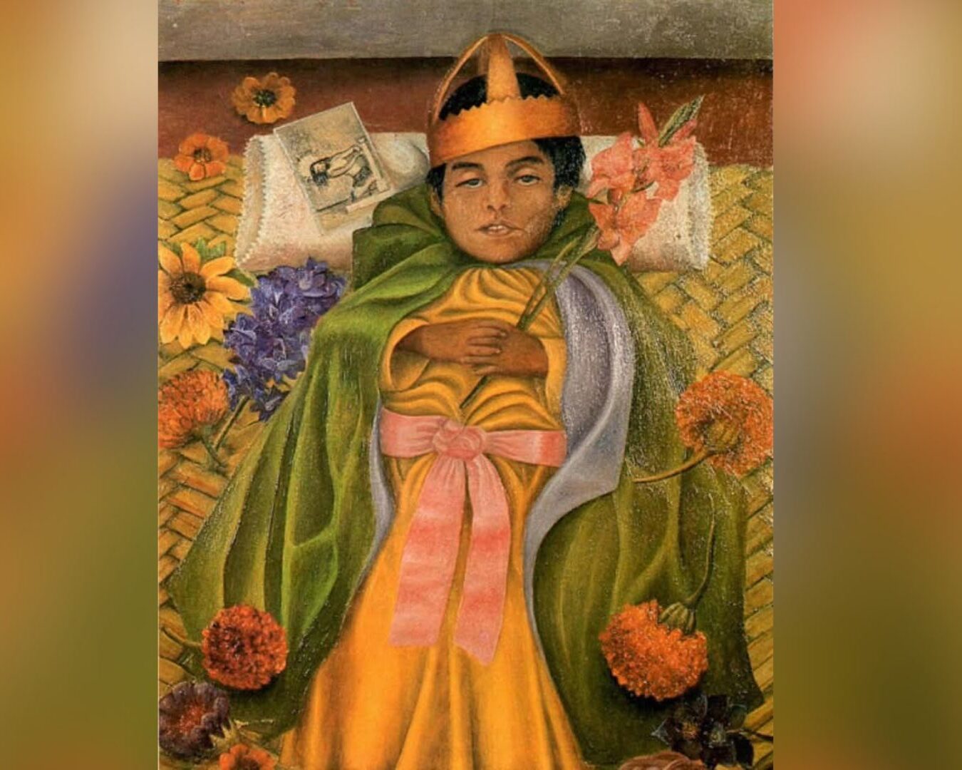 Ilustra esta información: «El difuntito Dimas.» (1937), obra de Frida Kahlo (1907-1954), pintora mexicana.