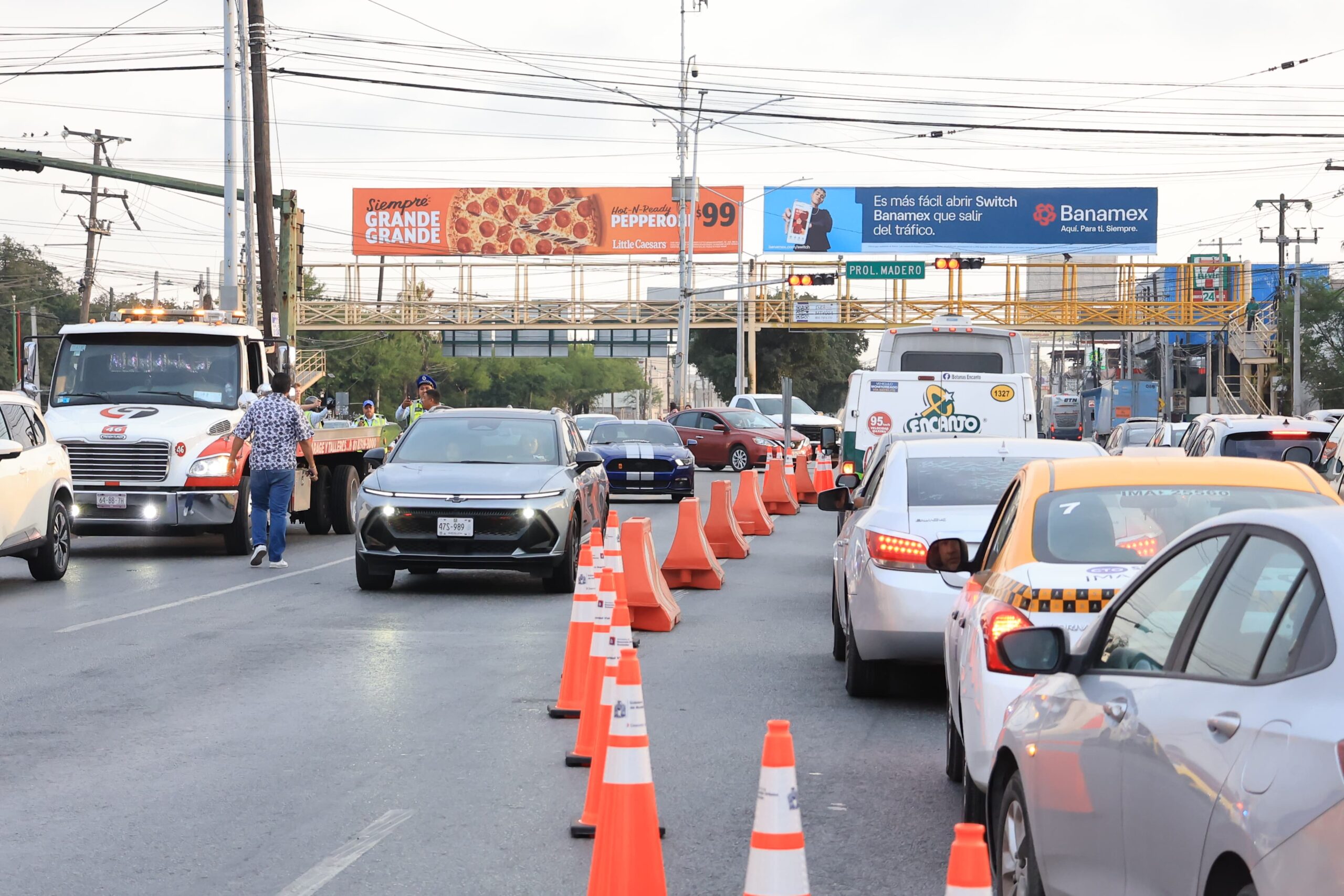 En el arranque del dispositivo, Fernando Gutiérrez Moreno, secretario de Desarrollo Urbano Sostenible, en compañía de Ricardo González Rodríguez, director de Tránsito, supervisó la medida con la que se busca dar fluidez en el Par Vial, luego del cierre de los carriles exprés de Constitución por las obras del metro.