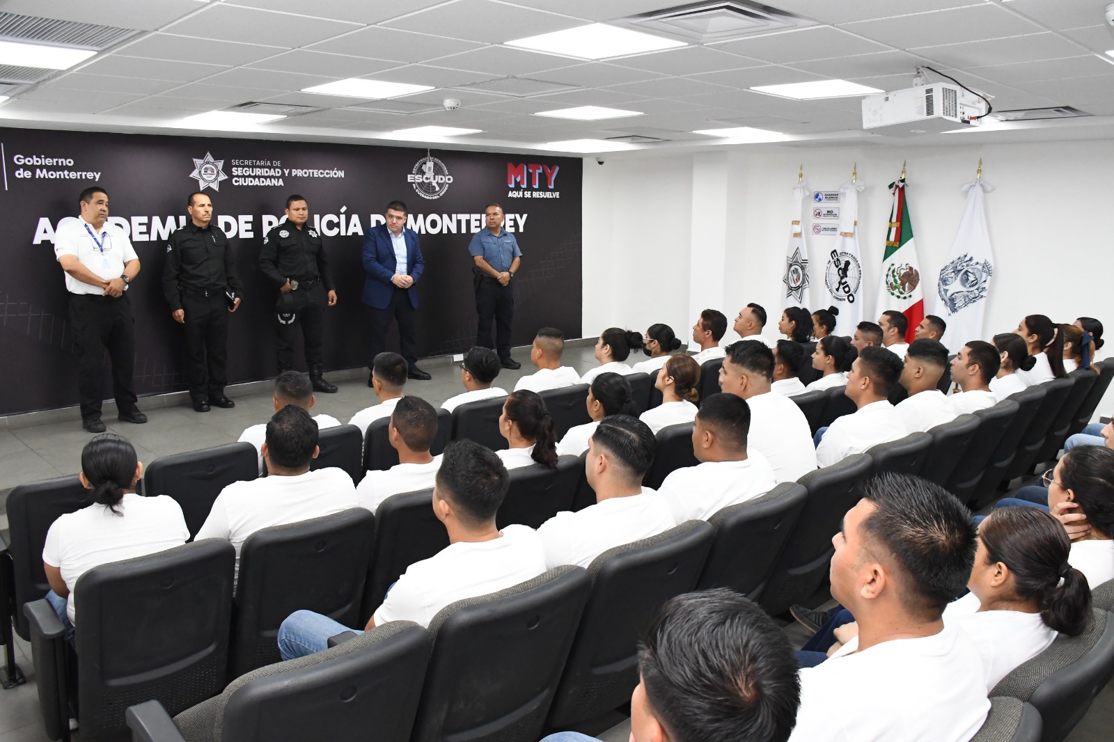 Monterrey, N.L.– El reclutamiento de aspirantes a policía continúa en aumento en Monterrey, con la incorporación este lunes de 57 nuevos cadetes a la Academia de Formación y Especialización Policial, como parte de la estrategia ESCUDO, que busca fortalecer el estado de fuerza de la Secretaría de Seguridad y Protección Ciudadana.