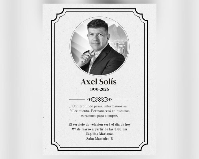 Nuevo León.- La famlia del periodista y comentarista deportivo Axel Solis, dió a conocer que lamentablemente falleció a los 56 años, aunque se desconocen las causas del desceso.