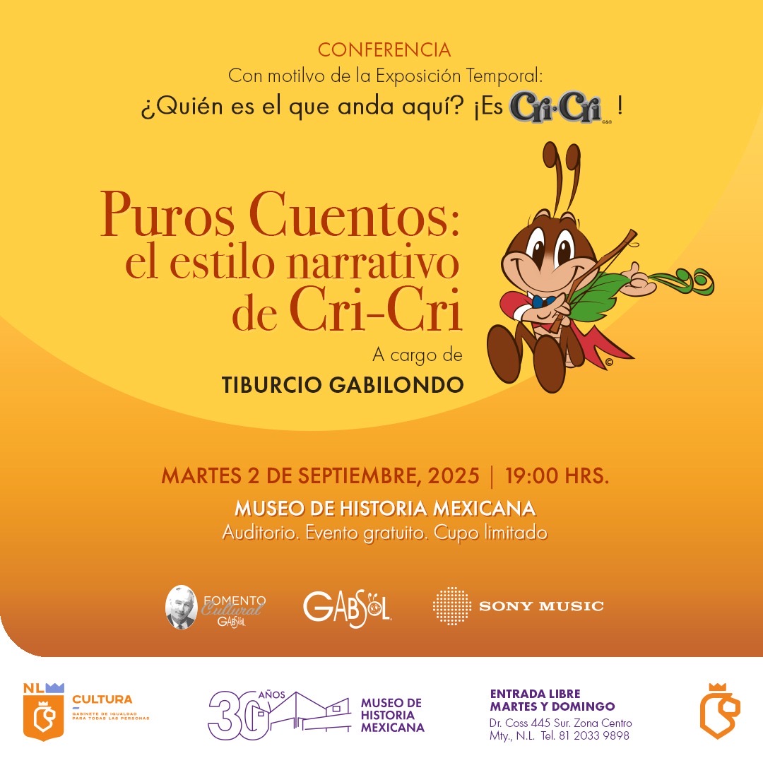 Monterrey, N.L.– El Museo de Historia Mexicana ofrecerá la conferencia “Puros Cuentos: el estilo narrativo de Cri-Cri”, a cargo de Tiburcio Gabilondo, hijo del compositor Francisco Gabilondo Soler, el martes 2 de septiembre a las 19:00 horas en el Auditorio del museo.