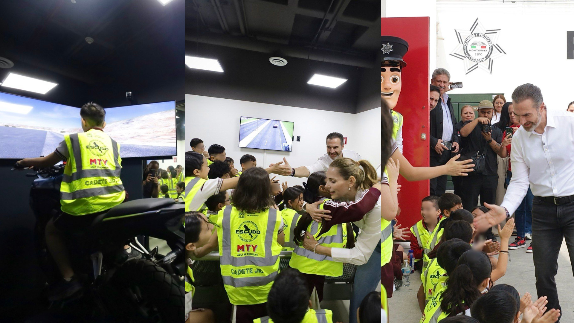 Las niñas y niños, provenientes de la colonia Valle Verde, fueron recibidos por el alcalde Adrián de la Garza, junto a la presidenta del DIF Monterrey, Gaby Oyervides, y mandos de la corporación de seguridad.