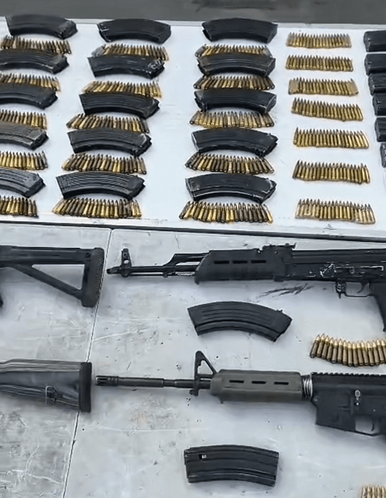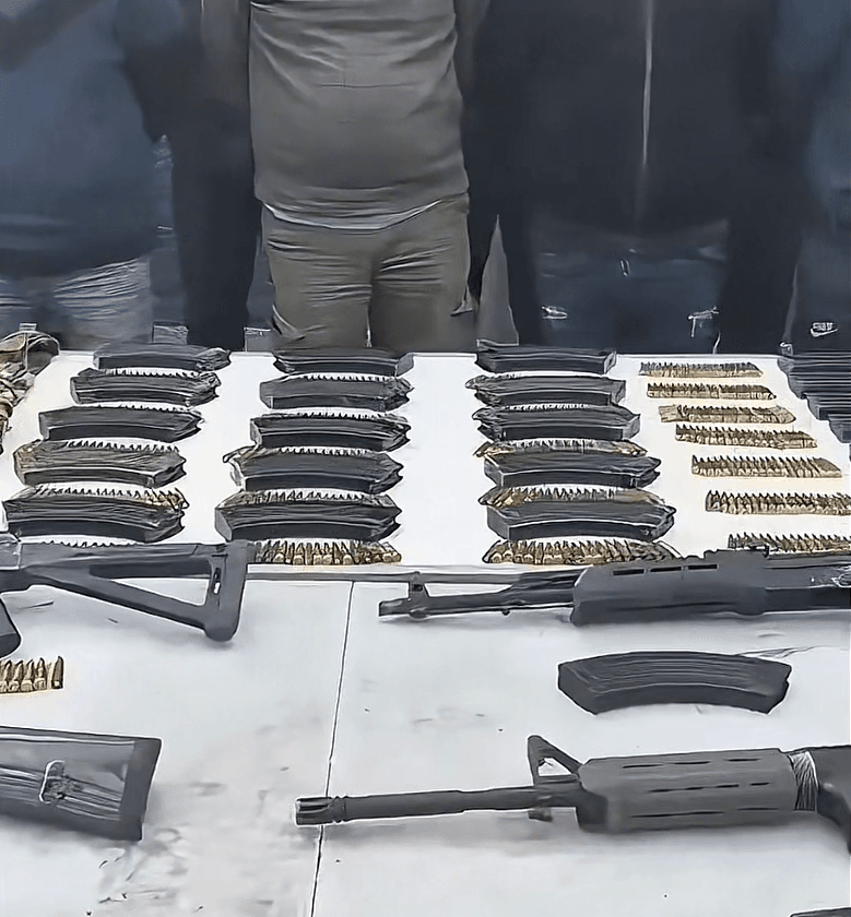 Al adentrarse a la maleza, encontraron a siete personas más portando la misma cantidad de armas.