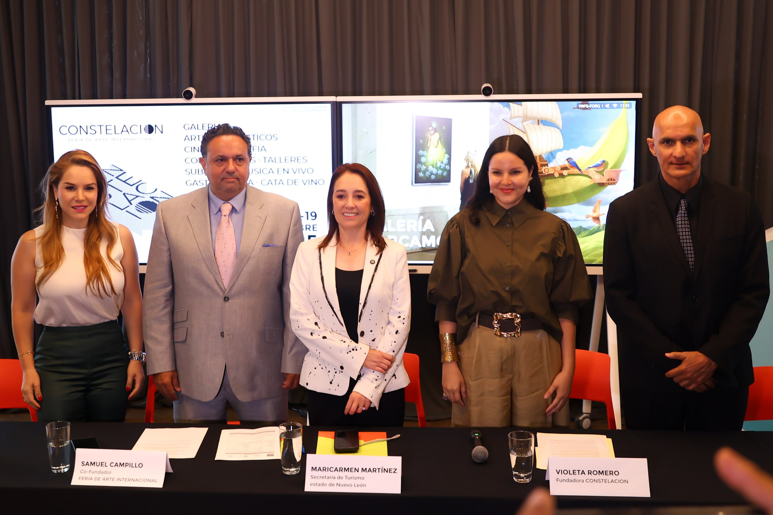 Nuevo León.- La Secretaría de Turismo de Nuevo León y Constelación Feria Internacional de Arte presentaron en IOS Offices Arboleda la edición 2025 de la feria, que se realizará del 17 al 19 de octubre en la Nave Lewis.