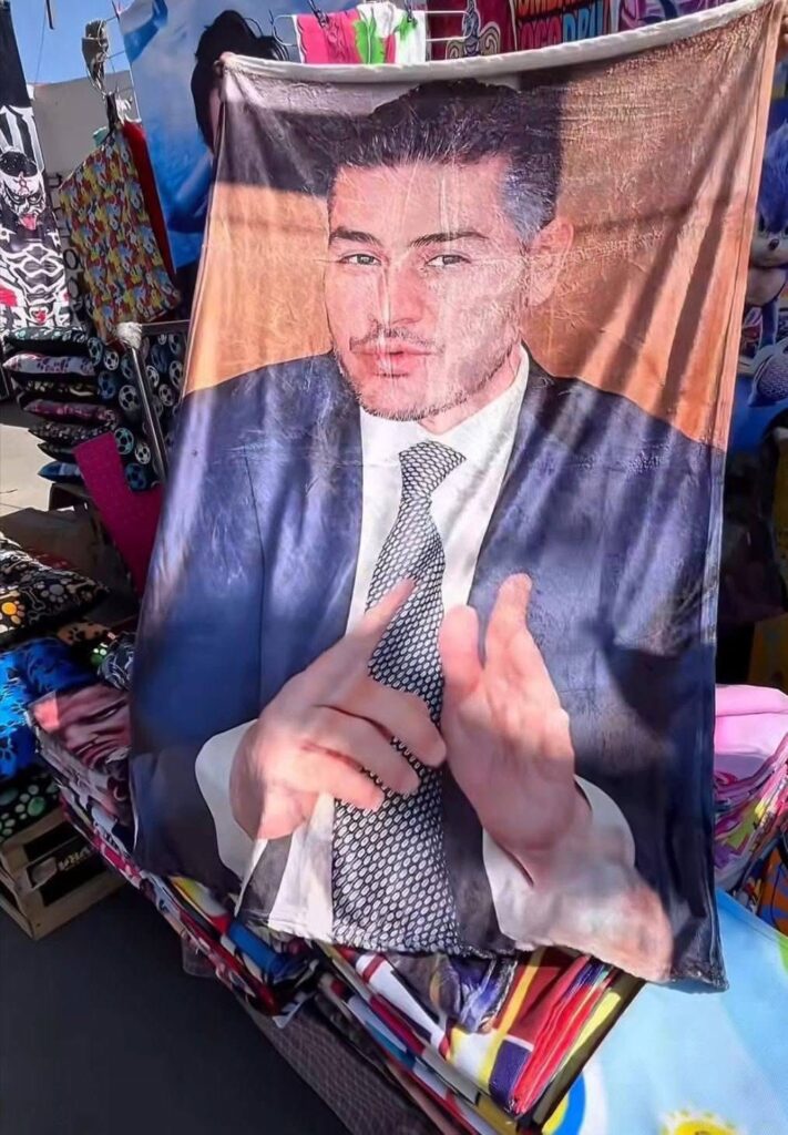 La imágen de García Harfuch, de 44 años, se puede apreciar en toallas o mantasque son adquiridas por la ciudadanía, convirtiendolo en una tendencia en redes sociales también.
