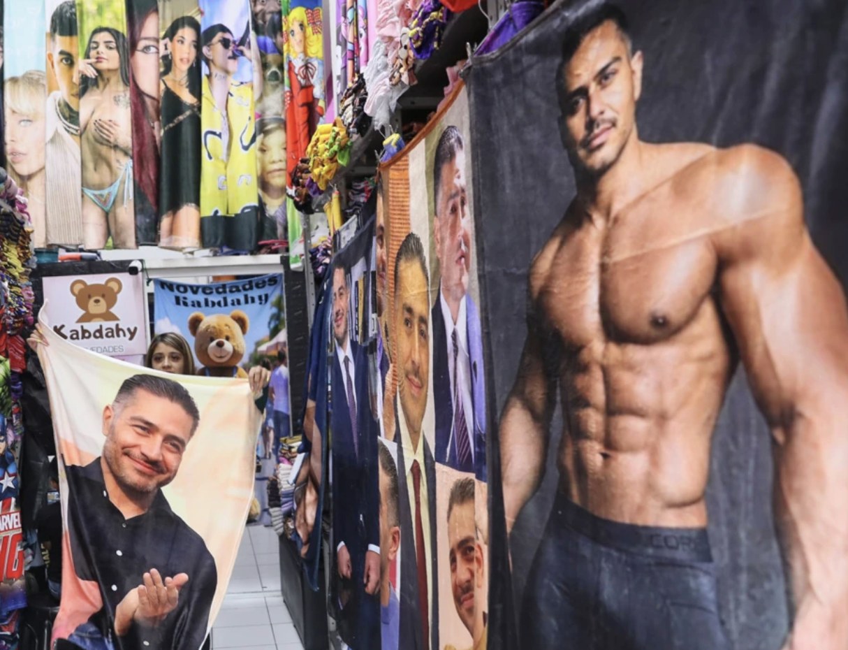 En los mercados ambulantes se puede encontrar toda clase de productos personalizados con su rostro como toallas, mantas o almohadas.