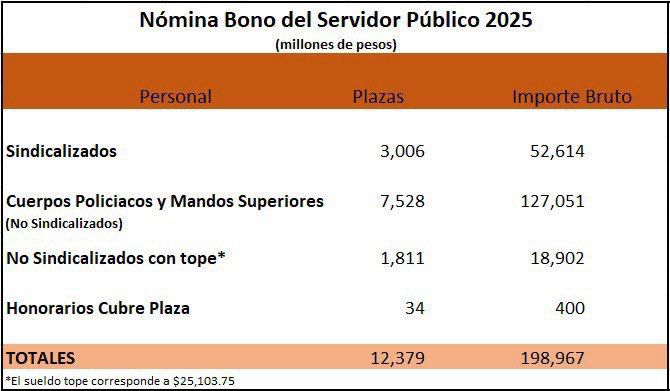La Secretaría de Finanzas y Tesorería General del Estado informó que un total de 12 mil 397 personas servidoras públicas recibieron estos pagos.