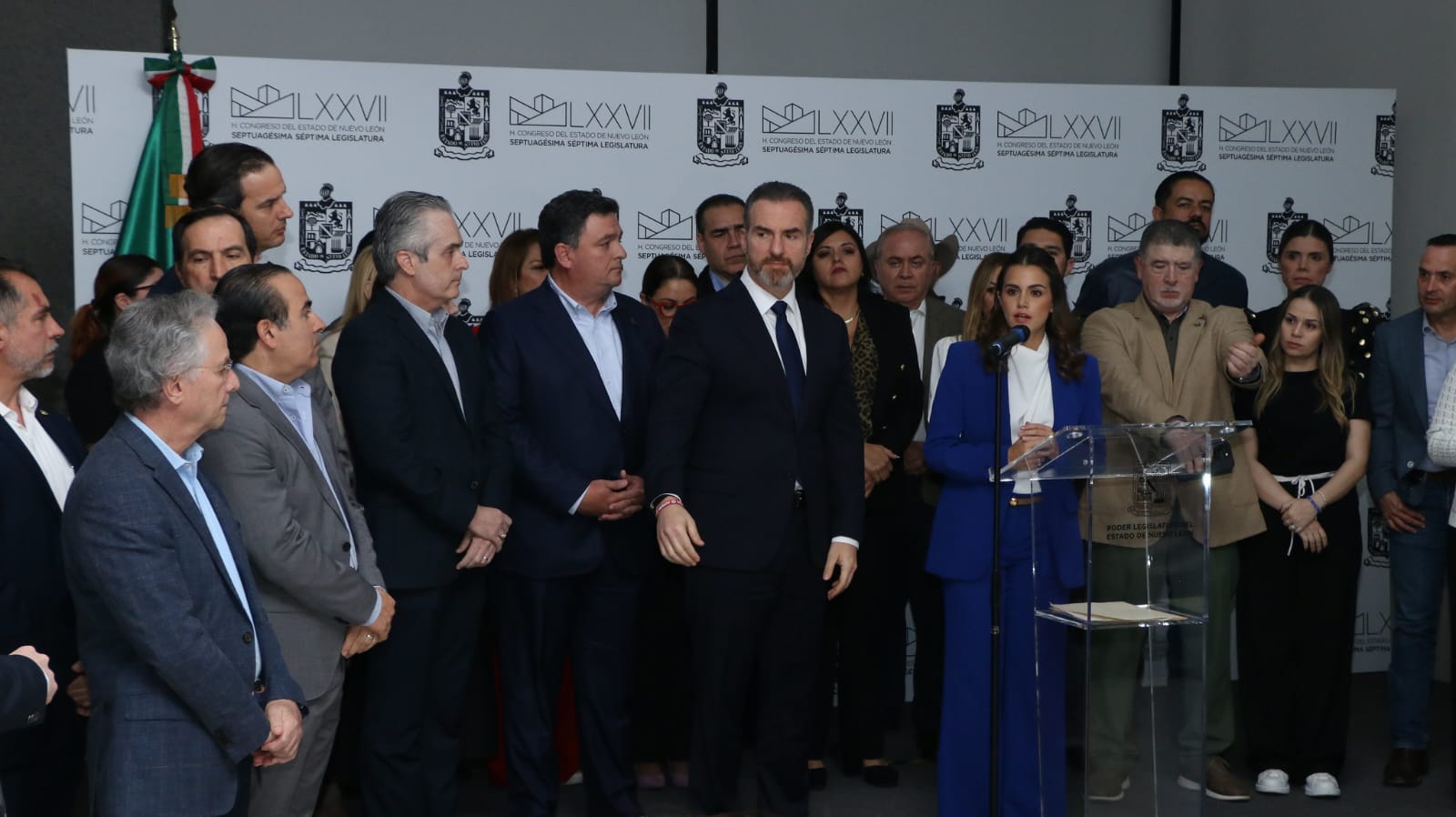 Al considerar que no hay un compromiso de uso responsable del recurso, ni de ahorro por parte del Gobierno del Estado, las bancadas del PAN, PRI y PRD en compañía del alcalde de Monterrey, Adrián de la Garza Santos y de empresarios anunciaron que no aprobaran el incremento del Impuesto Sobre la Nómina dentro del Presupuesto para el 2026.