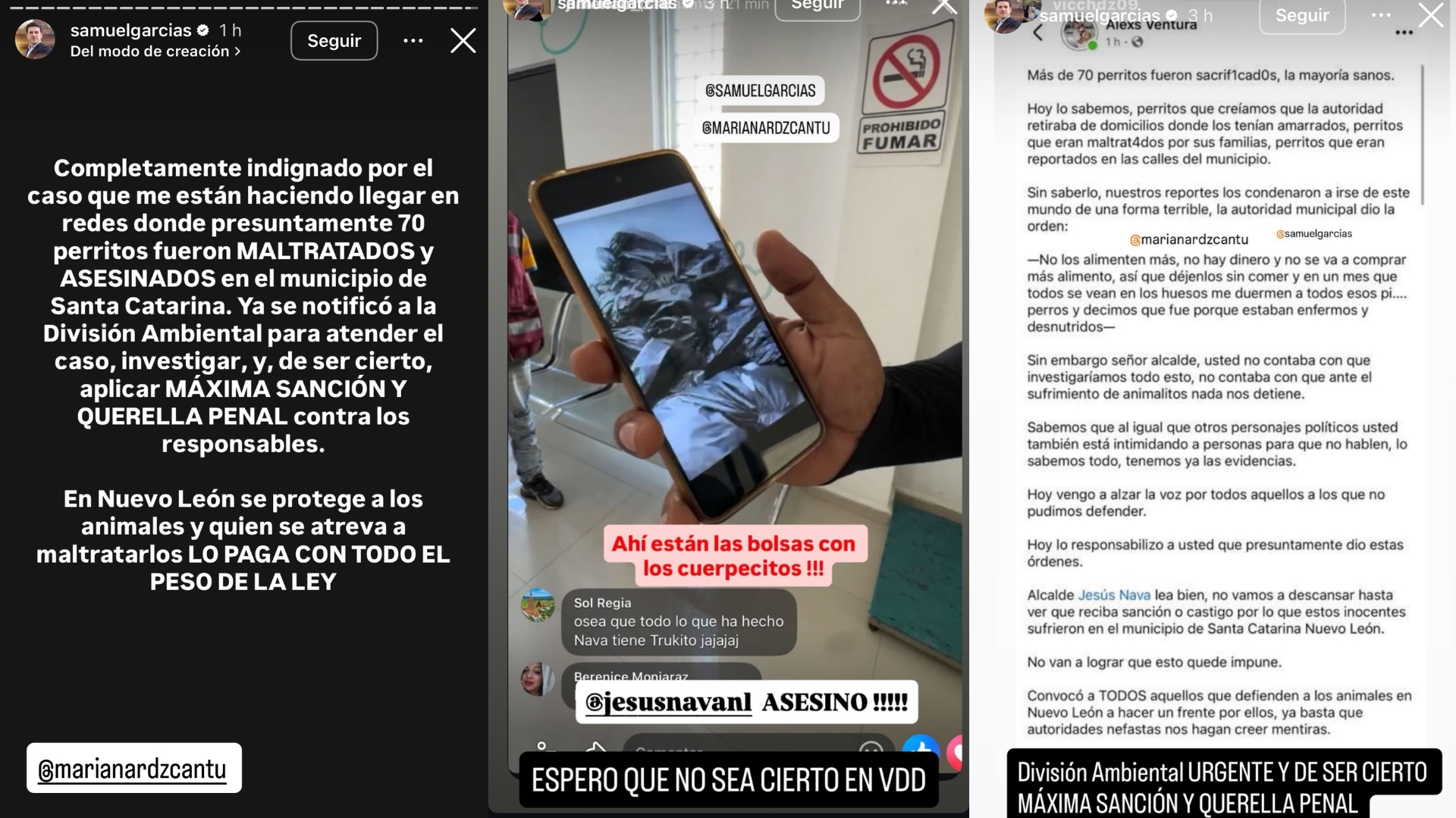 Monterrey, NL.– El gobernador Samuel García Sepúlveda solicitó a la División Ambiental abrir una investigación urgente sobre la denuncia de un presunto sacrificio de más de 70 perros en el municipio de Santa Catarina.