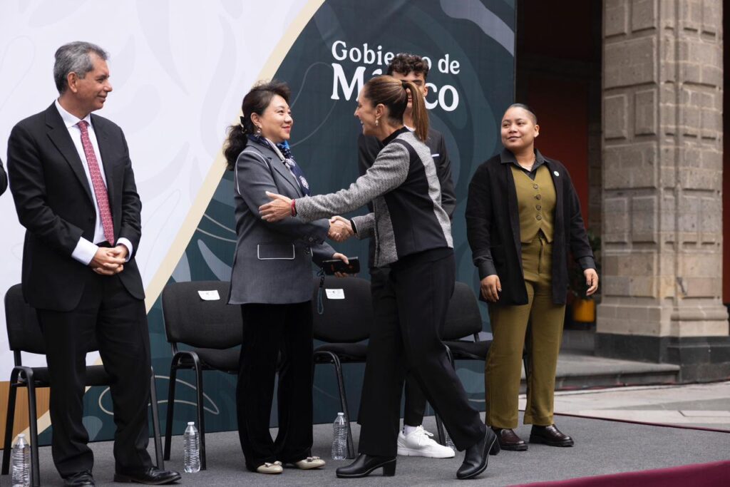 Un emotivo acto que engalanó también la ceremonia fue el reconocimiento honorífico que la Presidenta entregó a la entrenadora de clavados Ma Jin, mentora de los medallistas olímpicos Osmar Olvera y Juan Celaya.