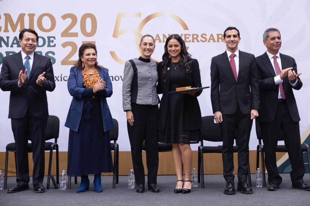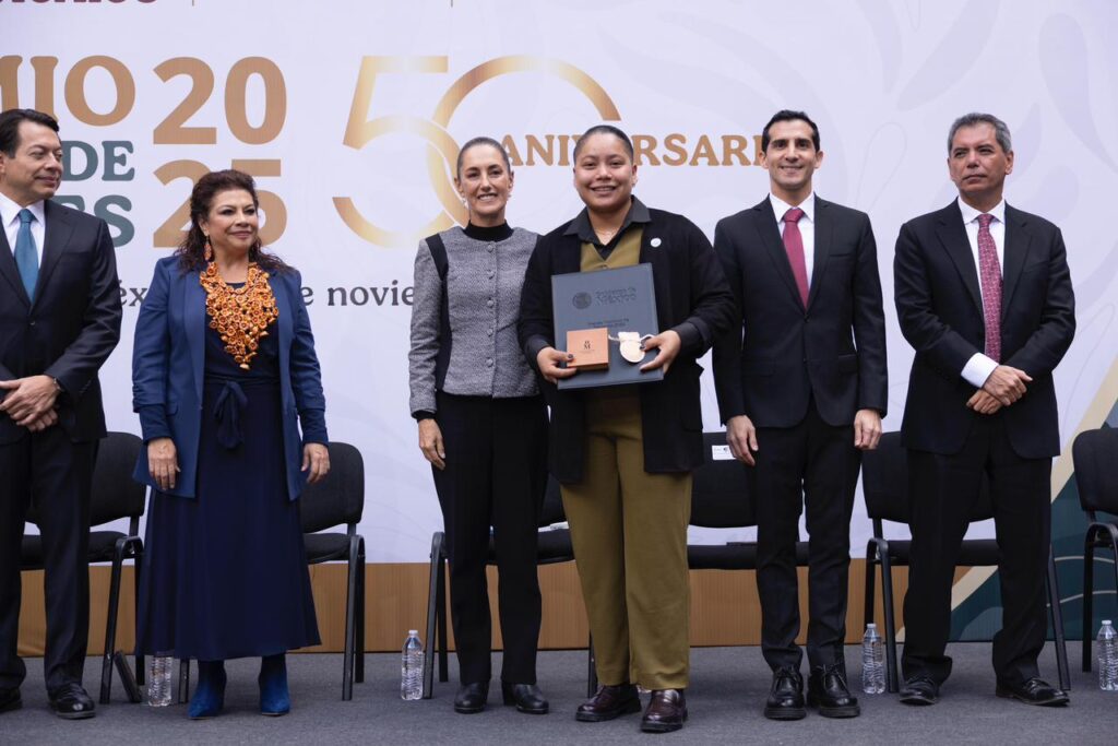 La presidenta Claudia Sheinbaum y el director de la CONADE, Rommel Pacheco, encabezaron la ceremonia que reconoce a siete categorías