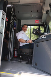 Conduciendo una de las unidades, dio arranque a la primera fase operativa de este proyecto, con la activación de la ruta D, que conecta Obispado, Macroplaza y Fundidora. Esta ruta forma parte de un plan integral que contempla cinco circuitos con cobertura en más de 320 colonias.