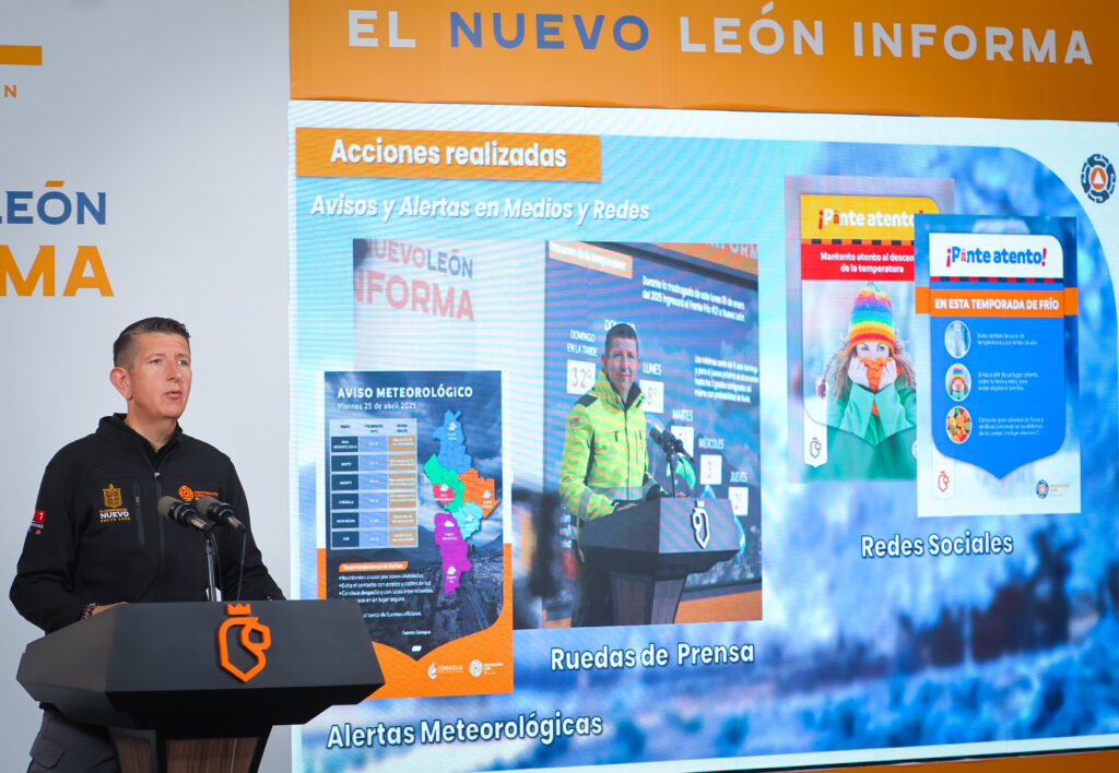 Nuevo León.- Ante la temporada invernal 2025-2026 Protección Civil del Estado está listo para brindar atención y apoyo a la ciudadana, es por ello que presentó el programa de acciones y recomendaciones para los frentes fríos que se registren en la ciudad.