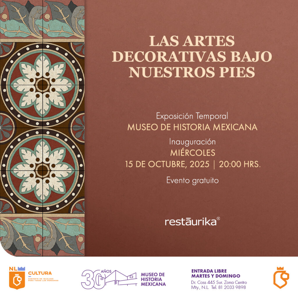 Nuevo León.- El Museo de Historia Mexicana invita a la inauguración de la exposición “Las Artes Decorativas bajo nuestros pies”, el miércoles 15 de octubre a las 20:00 horas. La muestra, es un recorrido sobre la memoria de los pisos de pasta, sus talleres, los colores y los diseños que definieron una época clave en las artes decorativas locales, que tuvieron gran fuerza a principios del siglo XX.