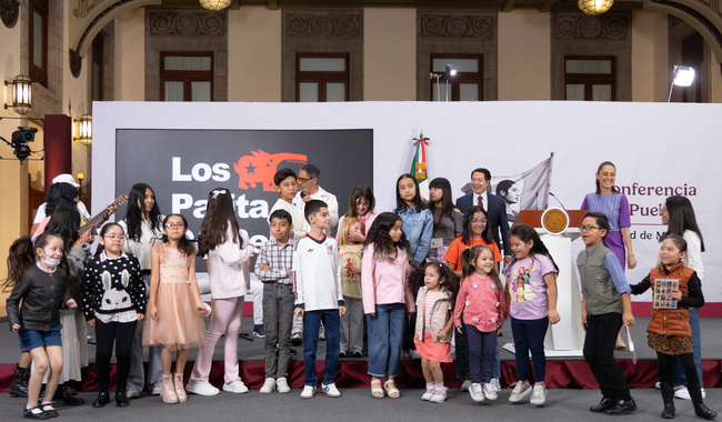 En la conferencia matutina, a la que asistieron niñas y niños invitados, se presentó la agrupación de rock infantil “Patita de Perro” quien interpretó «Vamos a brincar» y «Chin-chin el que se mueva».