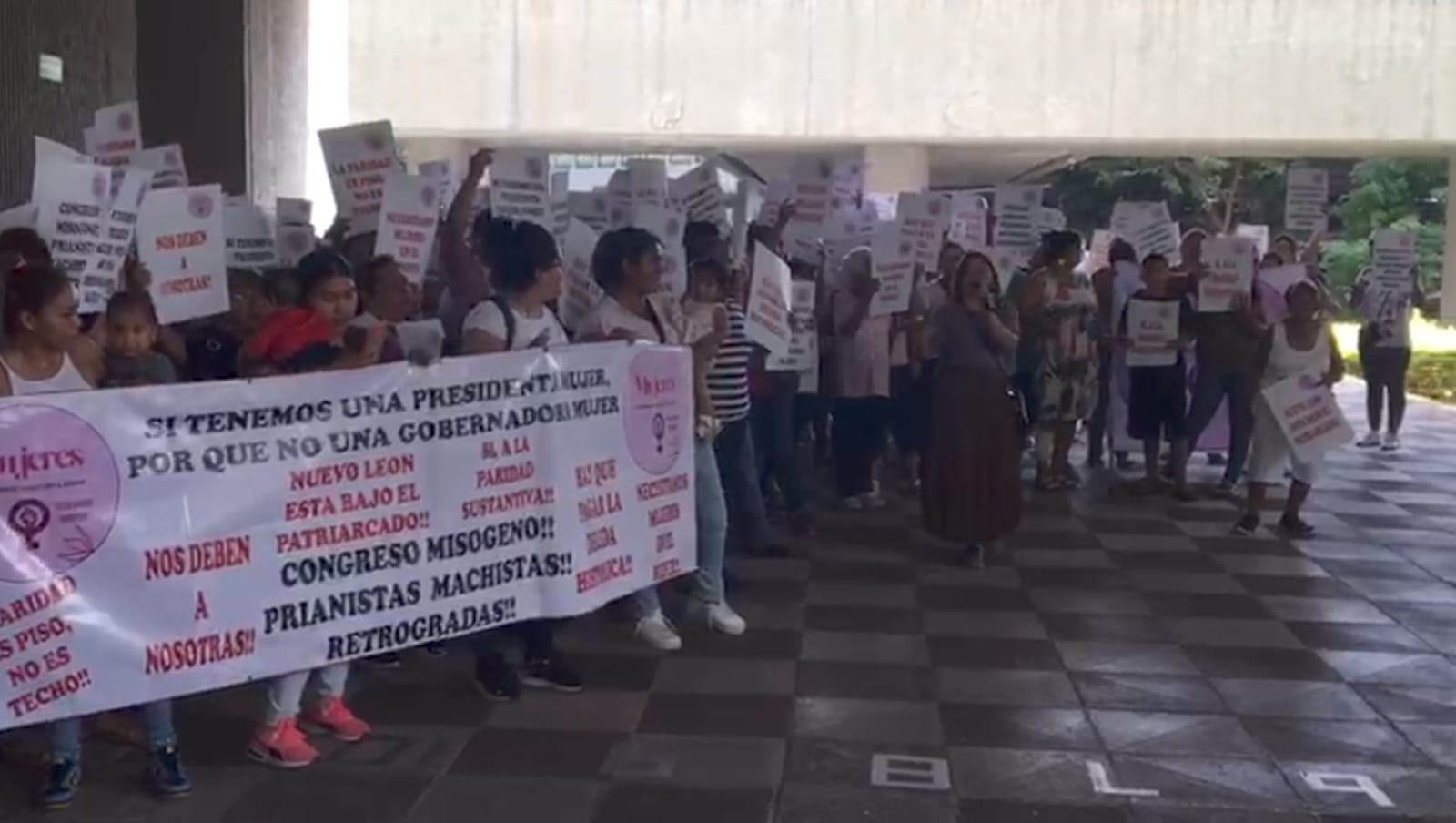 Nuevo León.- Un grupo de mujeres protestaron en el Congreso Local para exigir paridad para el próximo proceso electoral.