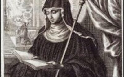 Santa Salaberga. Conocida por ser sanada de su ceguera por San Columbano y dedicar su vida al servicio de Dios.