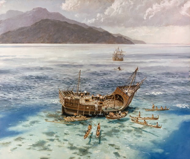 Naufragio de la Santa María (1492): La carabela de Colón encalla, usándose sus restos para construir el Fuerte Navidad, el primer asentamiento español en América.