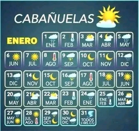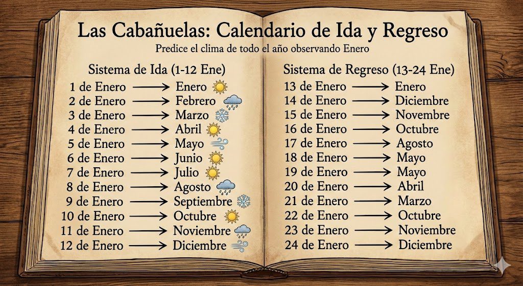 Del 1 al 12 de enero son las cabañuelas de ida cada día corresponde a un mes y del 13 al 24 de enero son de regreso pero los meses van al revés.
