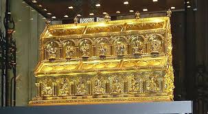 Los restos de los Reyes Magos se encuentran en un magnífico relicario triple en la Catedral de Colonia, Alemania, donde llegaron tras un largo viaje desde Oriente, pasando por Constantinopla y Milán, y fueron trasladados a Colonia en el siglo XII por Federico Barbarroja, convirtiéndose en un importante tesoro para la ciudad y atrayendo a miles de peregrinos.