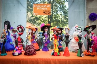 Además se montó una exposición de piñatas en forma de catrinas, de la que se eligió la mejor elaborada con materiales reciclados como cartón, carrizo, alambre en su estructura y papeles de china, lustrina, crepé, bond, pintura, tela y detalles de pedrería, de acuerdo a las bases del concurso.