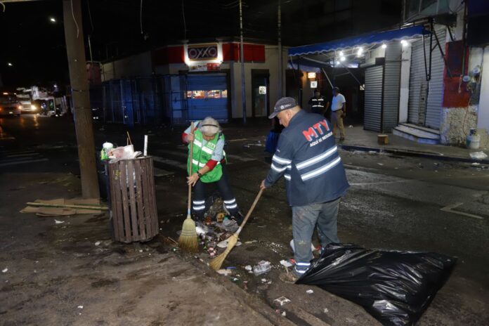 De acuerdo con la Secretaría de Servicios Públicos de Monterrey los días 24 y 25 de diciembre el personal de la dependencia logró recolectar más de 33 toneladas de basura en las calles del primer cuadro de la ciudad.