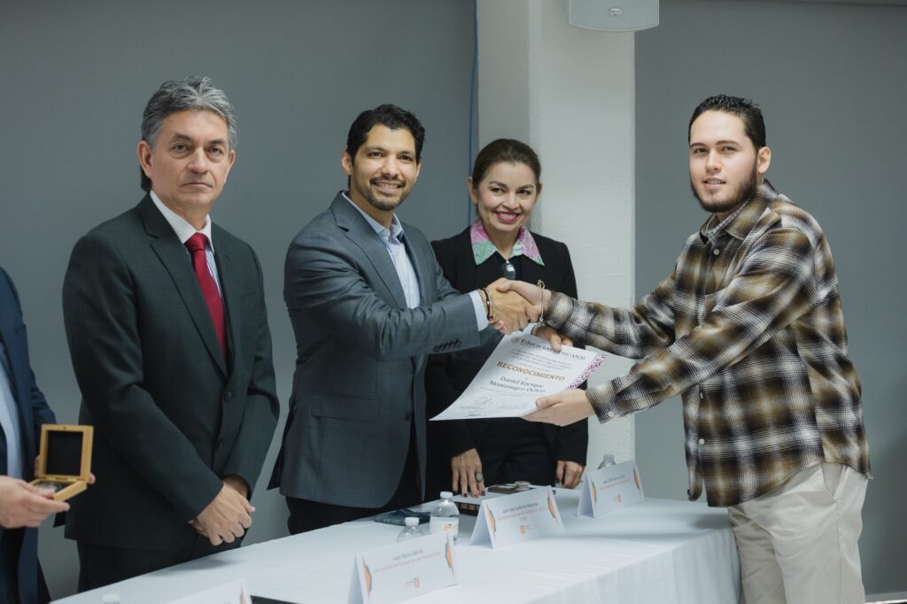 El “Reconocimiento a la Práctica Educativa 2025” es convocado por la Secretaría de Educación Pública (SEP) y la Unidad del Sistema para la Carrera de las Maestras y los Maestros (USICAMM), con el propósito de impulsar prácticas docentes que transformen los procesos educativos a partir de los planes y programas de estudio de la Nueva Escuela Mexicana. Las maestras y los maestros galardonados recibieron un diploma y una medalla como parte de este reconocimiento nacional.