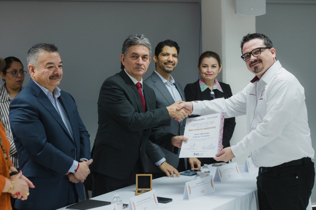 Nuevo León.- Autoridades de la Secretaría de Educación de Nuevo León entregaron el “Reconocimiento a la Práctica Educativa 2025” a 67 maestras y maestros de educación básica y media superior, por su destacada labor en la implementación de estrategias pedagógicas innovadoras y creativas que fortalecen los procesos de enseñanza en las aulas.