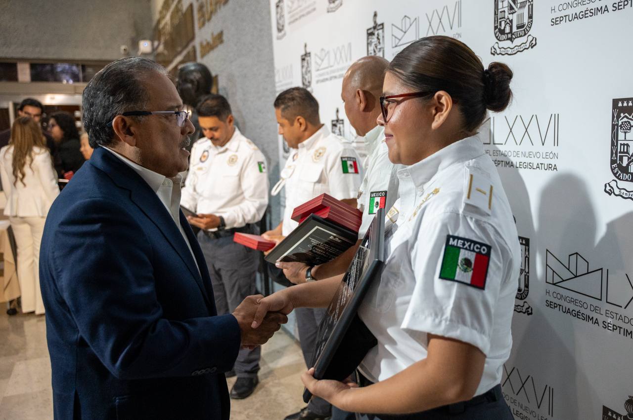 Monterrey, N.L.– Por su destacada labor en favor de la ciudadanía, tres elementos de la corporación Proxpol Escobedo recibieron la Medalla Fray Servando Teresa de Mier, que otorga el Congreso del Estado de Nuevo León como reconocimiento a la excelencia y compromiso social.